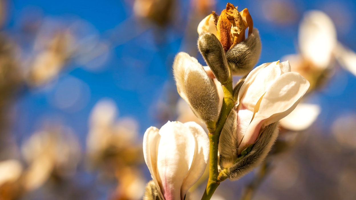 Magnolien sind mit einer der ältesten Blütenpflanzen der Erde, die bis zur Eiszeit auch in Europa heimisch waren und heute ihre Heimat in Ostasien und Amerika haben. Neben den Magnolien wurden noch Hortensien, Waldreben, Ginkgobäume, Blumen und Sträucher im Magnoliengarten angepflanzt, damit es auch nach der Blütezeit der Magnolien, noch farbige Blüten zu bestaunen gibt. Die Gartenanlage, die mit kleinen Hügeln, Steinen, Wegen und Ruhezonen konzipiert ist, lädt den Besucher zum Verweilen ein.