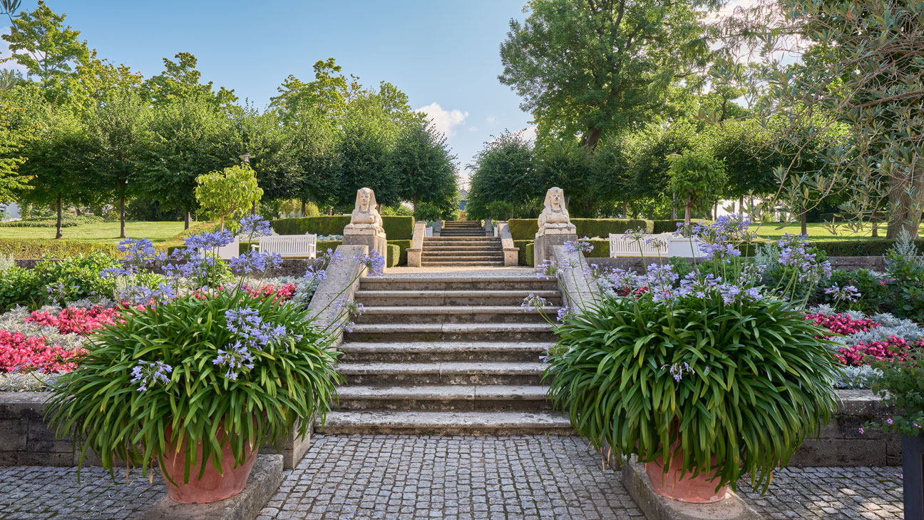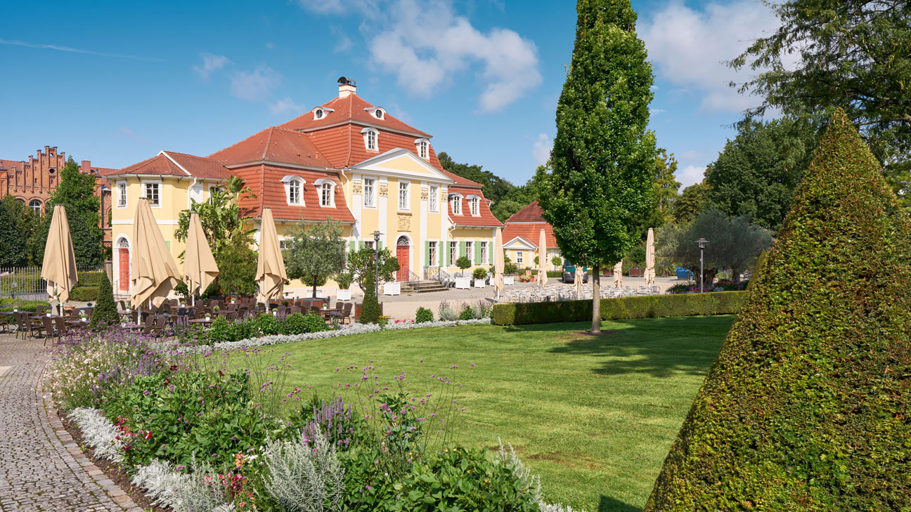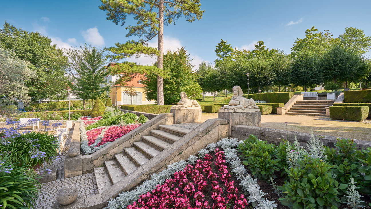 Im Laufe der Zeit wurde die barocke Grundstruktur des Schlösschenparks dem jeweiligen Zeitgeschmack angepasst und so vereint er heute viele verschiedene Stile der Gartenarchitektur. Die terrassenartige, idyllische Parkanlage mit ihren seitlichen Rabatten bietet einen herrlichen Anblick. Der halbrunde Platz in diesem Park wird für zahlreiche Veranstaltungen genutzt und bietet mit dem Blick auf das Friederikenschlösschen eine beeindruckende Kulisse. Beim Rundgang durch den Schlosspark passieren Sie die Orangerie, den Pavillon mit Brunnen für schwefelhaltiges Wasser, den naturbelassenen Parkteil und die alte Remise, in der heute Gäste in der historischen Druckerei kreativ tätig sein können.