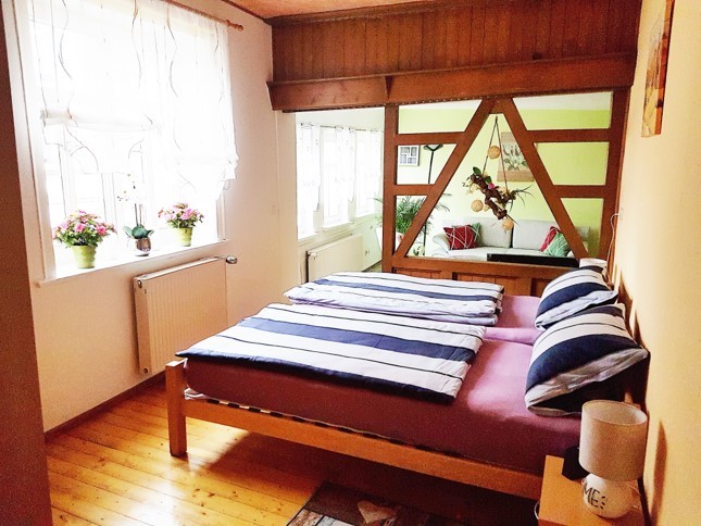 Herzlich willkommen in unseren Ferienwohnungen am Fuße der Bergkirche. Wir bieten Ihnen 2 Fewos für bis zu 3 Pers. Fewo 1 befindet sich im 1. OG (42 qm) mit kombiniertem Wohn- u. Schlafbereich, Fewo 2 im 2. OG (44 qm) mit getrenntem Wohn- und Schlafzimmer. Beide mit voll ausgestatteter Küche mit Sitzmöglichkeit, Wohnraum mit Schlafcouch, SAT-TV, W-LAN, Fewo 1 mit Dusche, Fewo 2 mit Eckbadewanne, Doppelbett, Bettwäsche u. Handtücher inkl., Mindestaufenthalt 3 Nächte.