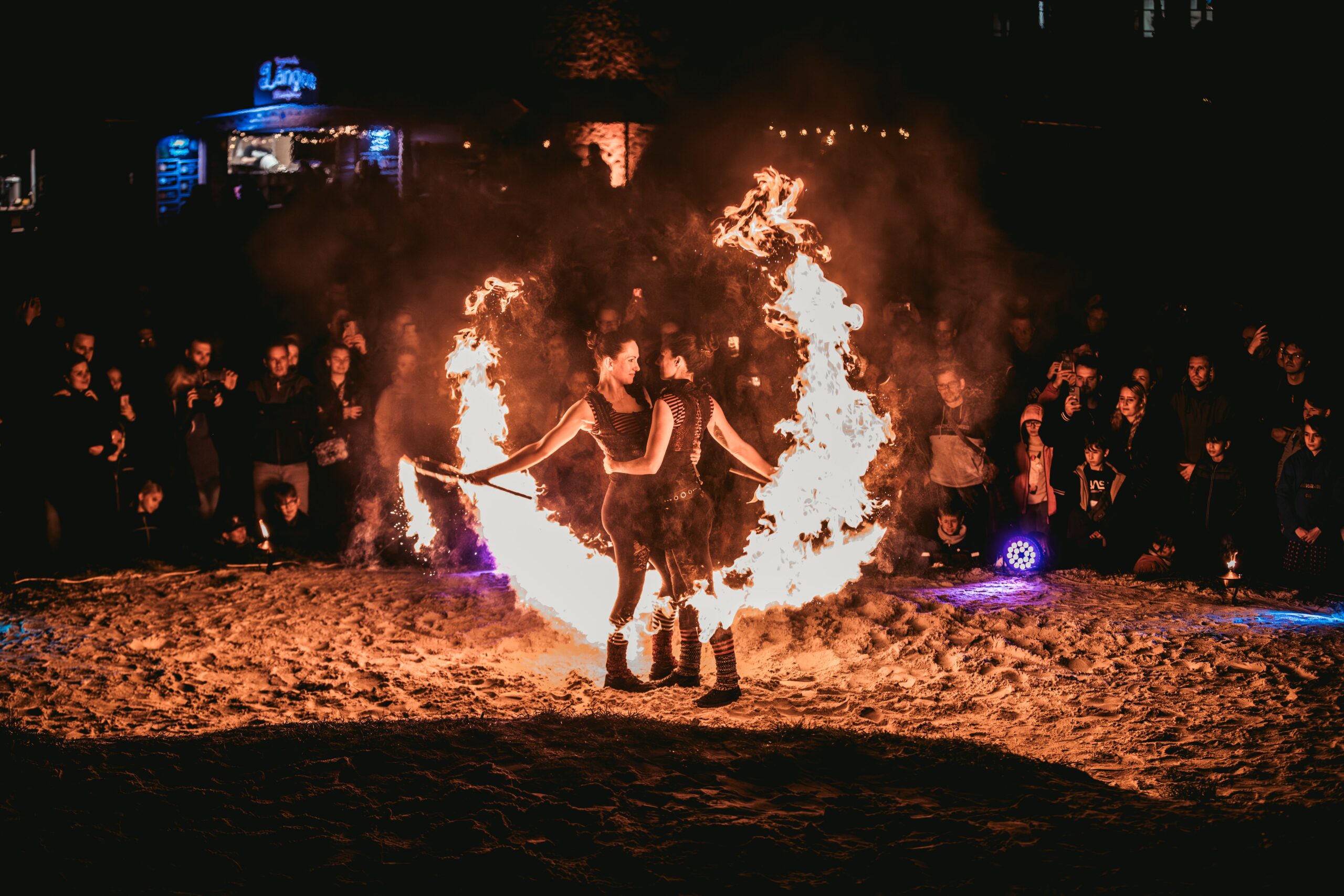 In dynamischen Choreografien und elegantem Feuerspiel vereinen die Künstlerinnen ,Maxi Matrix’ und ,Soleil’ ihre Fähigkeiten und Liebe zur Performance und erschaffen mit ihrer ganz eigenen Zwillingsmagie Momente zum Staunen und Träumen.