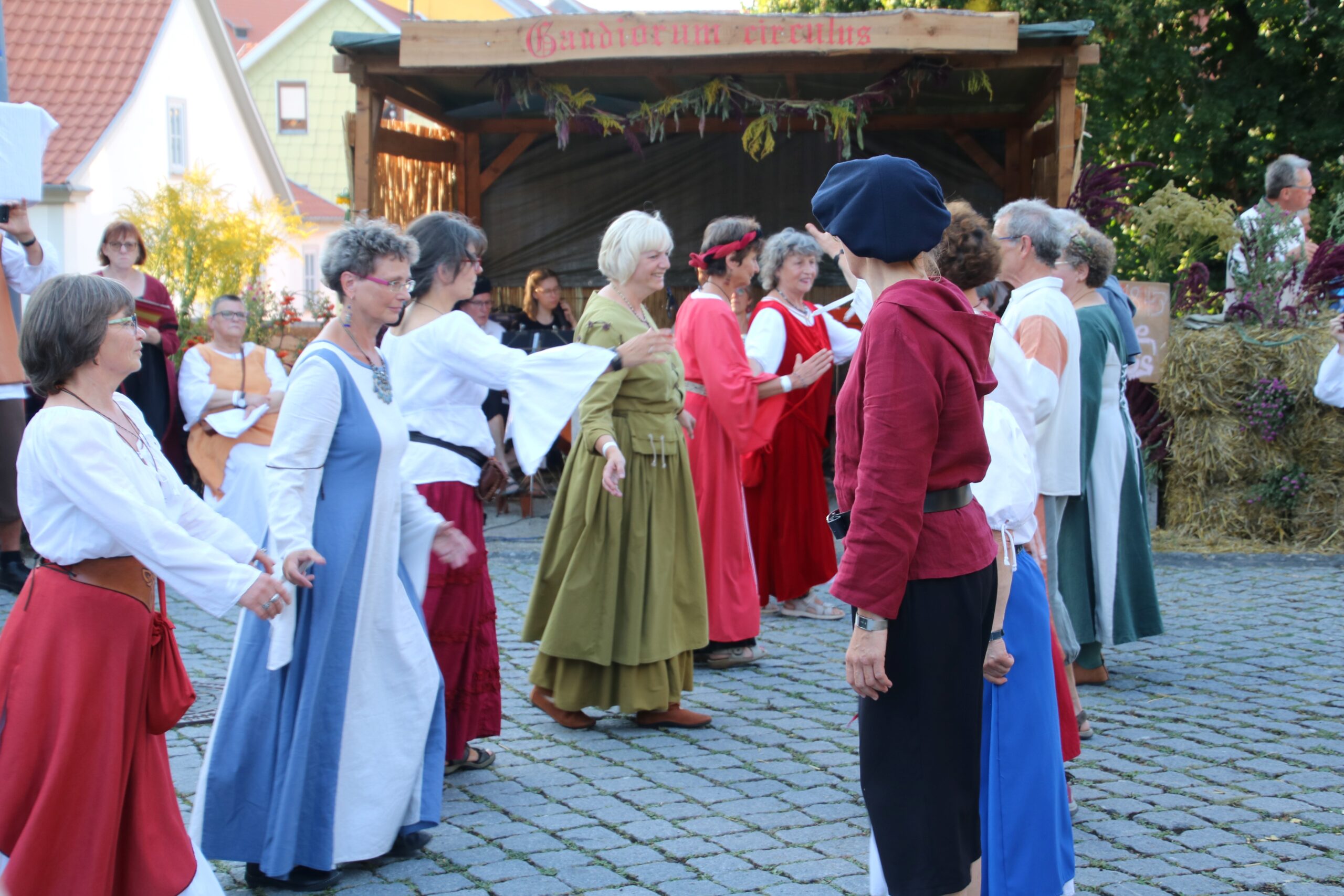 Wo Musik erklingt, sollte auch getanzt werden. So setzen unsere Tänzer mit dem Namen gaudiorum circulus flink ihre Füße zu frohen mittelalterlichen Weisen und laden alle Gäste ein, es ihnen mit Spaß und Freude nachzutun.