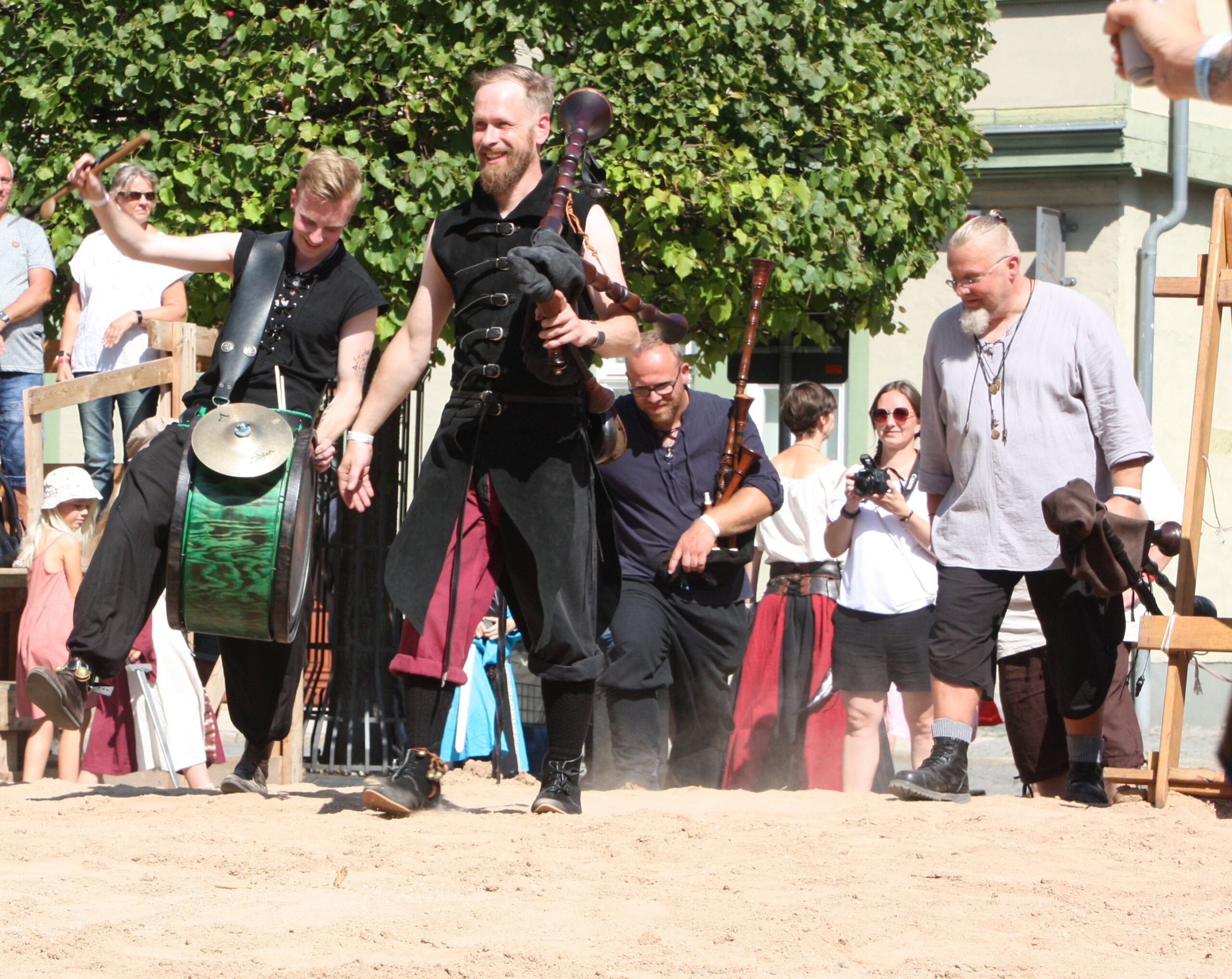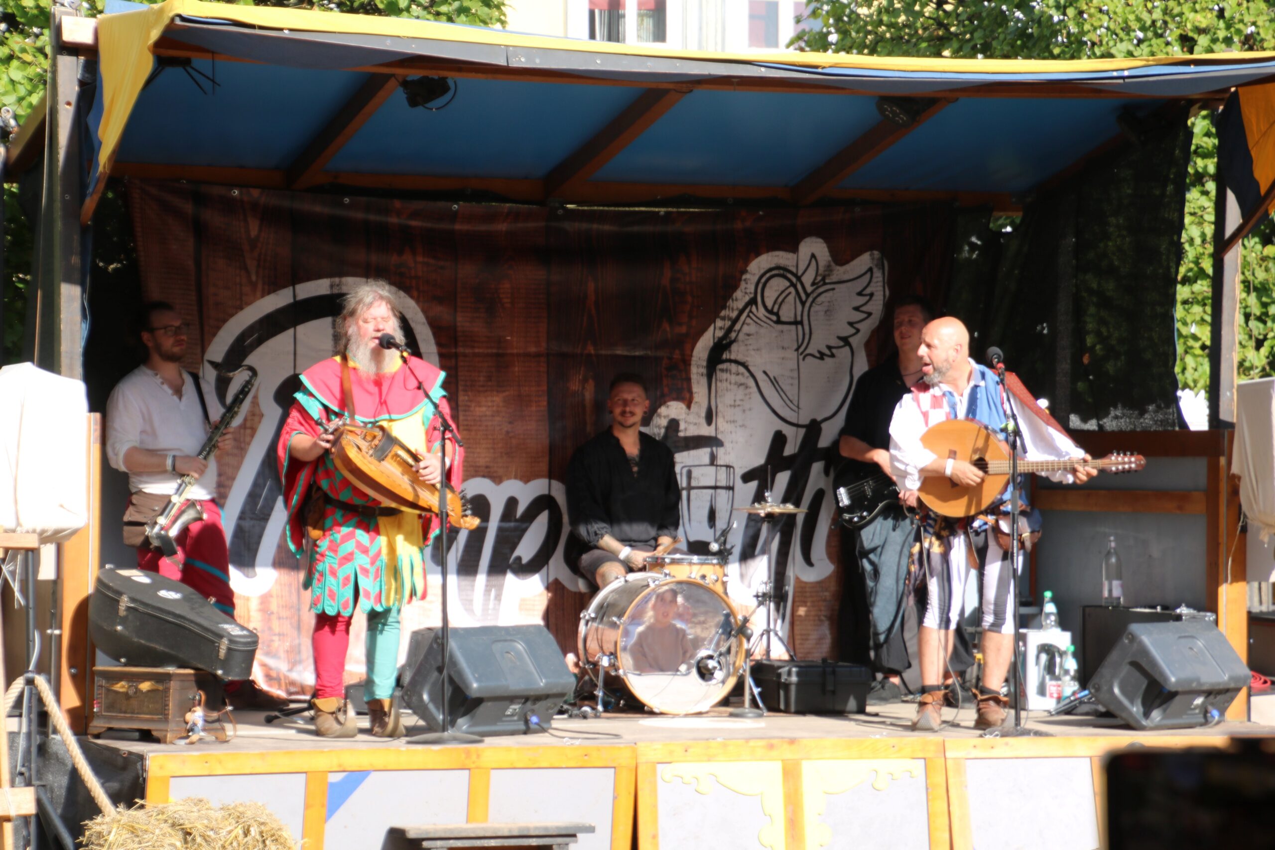 Als absoluter Publikumsliebling der letzten zwei Jahre hat sich die Band Unvermeydbar aus Nordhessen erwiesen, die mit ihrer mitreißenden Musik mit Dudelsack, Violine und Trommel eine grandiose Stimmung auf dem Schlosshof erzeugt und mit ihrer Spielfreude unvermeidbar ansteckend wirkt.