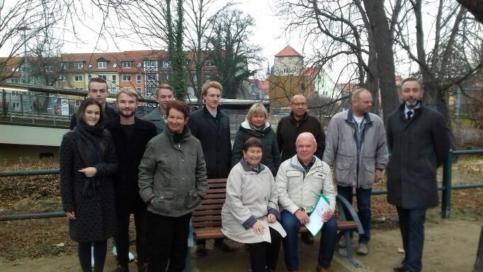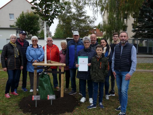 Die ehemaligen Schüler der 10c der POS I pflanzten anlässlich ihrer 50-jährigen Einschulung am 18. September in der Poststraße einen Säulen-Fächerblattbaum.