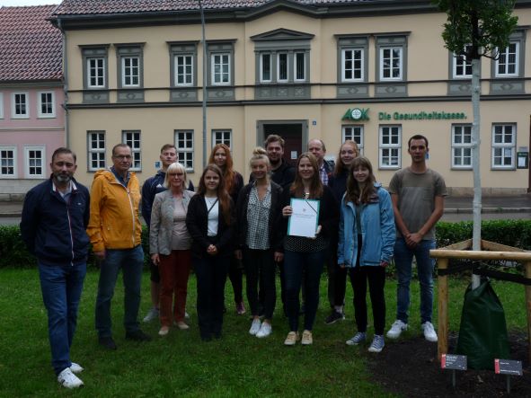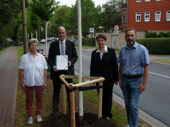 Aus Verbundenheit zur Stadt Bad Langensalza pflanzte die Deutsche Bank AG Filiale Bad Langensalza am 24. Juni in der Poststraße einen Säulen-Fächerblattbaum.