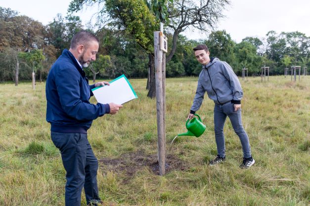 Eine lange Tradition. Am 09. Juli pflanzten die Abiturienten des Abschlussjahres 2021 in der Parkanlage Gothaer Straße eine Säulen-Eiche.