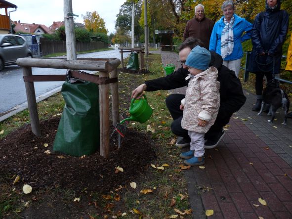 Ebenfalls am 15. Oktober pflanzten Yvonne Jadke-Werner und Jürgen Werner nachträglich zu ihrer Hochzeit mit ihren Familien in der Poststraße einen Säulen-Fächerblattbaum.