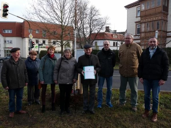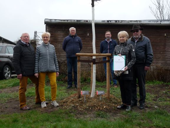 Nachträglich zu ihrer Diamanten Hochzeit am 30.12.2021 pflanzten Harald und Karin Ludewig mit ihrer Familie am 06. Januar in der Hohen Straße eine Säulen–Hainbuche.