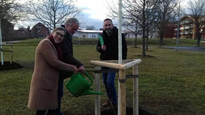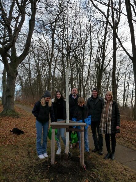 Eine weitere Baumpatenschaft. Am 04. Dezember übernahm die Familie Birgit und Lars Enders–Hinkelmann für ihre Kinder Tim, Klara, Frida und Gustav eine Patenschaft über eine Kleinkronige Winter–Linde am Badeweg.