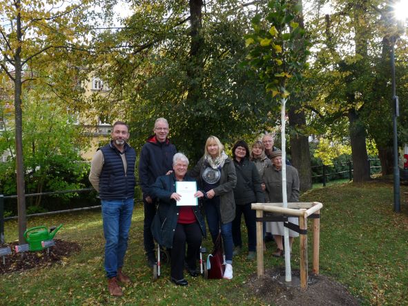 Karin Heinrich pflanzte mit ihrer Familie am 21.Oktober anlässlich ihres 80. Geburtstages nachträglich am Barfüßer eine Sommer–Linde.