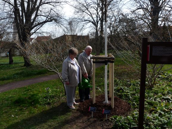 Familie Hoffmann pflanzte zu ihrem 60. Hochzeitstag und die Familie Fischer zu ihrem 35. Hochzeitstag im Friederikenschlößchen am 11. September einen Säulen-Fächerblattbaum.