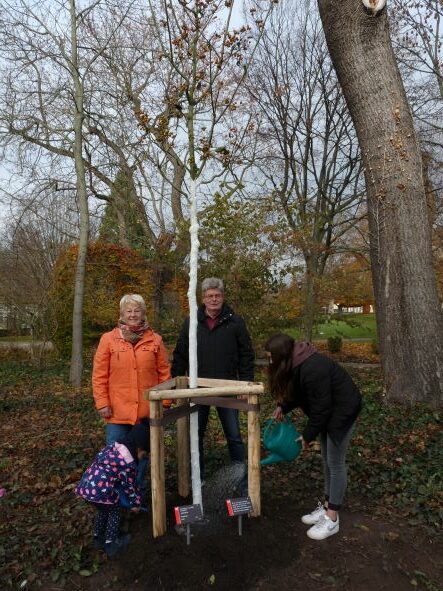 Anlässlich der Konfirmation und der Taufe ihrer Enkel Noah, Lotta und Jette pflanzten Heinz und Beate Mattheis am 13. November in der Kuranlage einen Apfeldorn-Linde.