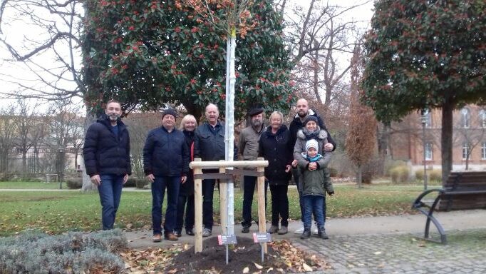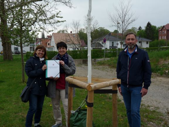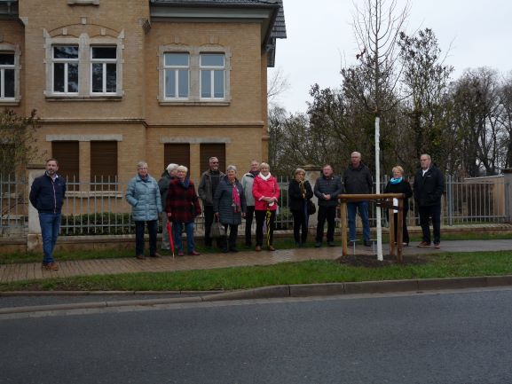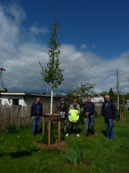 Zur Erinnerung an Margarete Ehrlich pflanzten die Familien Benich, Fischer, Kästner und die Familie Ehrlich am 15. Mai 2021 in der Lindenstraße eine Kleinkronige Winter–Linde.