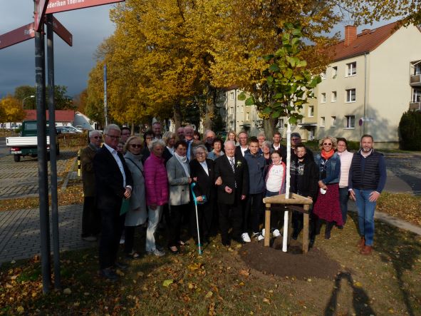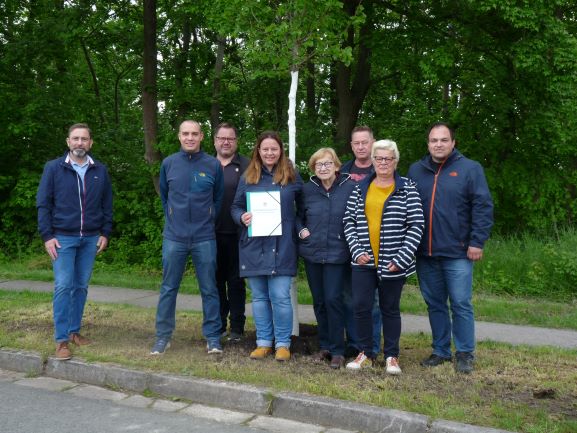 Heinz und Rosi Kruspe pflanzten anlässlich ihrer Goldenen Hochzeit mit ihrer Familie am 15. Mai 2021 im Schönstedter Weg eine Kleinkronige Winter-Linde.