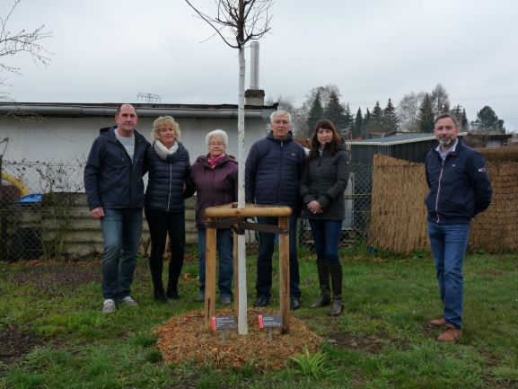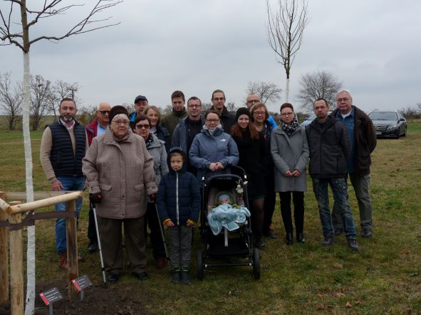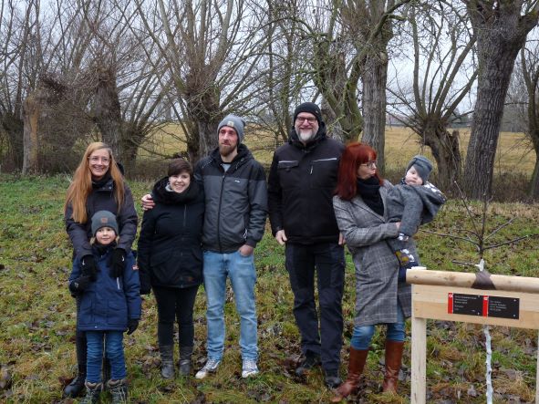 Familie Wartmann pflanzte in Hennigsleben am 18. Dezember zur Geburt ihrer Enkelin Ayva und zur Geburt ihres Enkels Travis Anton die Apfelsorte “Gravensteiner” und die Süßkirsche “Hedelfinger Riesenkirsche”.
