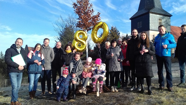 Zu ihrem 80. Geburtstag pflanzte Ingrid Böhns mit Ihrer Familie und Ihrem Freundeskreis in Merxleben eine Rot-Buche.