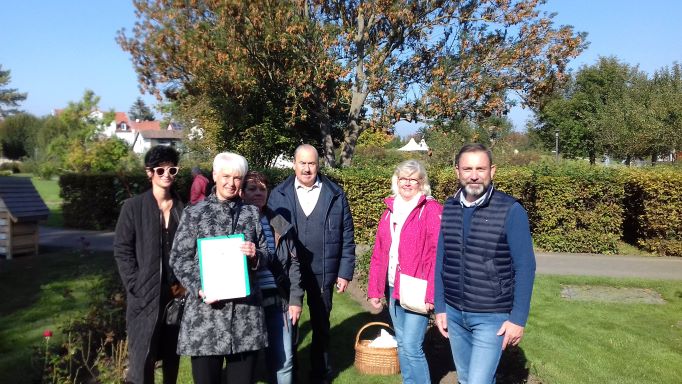 Am 10. September pflanzten Georg und Gerlinde Sondermann mit ihrer Familie anlässlich ihrer Diamantenen Hochzeit im Rosengarten eine Purpur-Erle.
