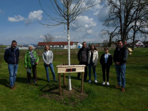Nachträglich zu ihrem 95. Geburtstag pflanzte Frieda Aurin mit ihrer Familie am 10. April 2021 in Grumbach eine Kleinkronige Winter-Linde.