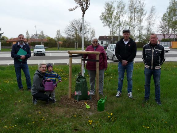 Aus Liebe zu Bad Langensalza und zu ihrem 75. Geburtstag pflanzte Frau Margot Merkel mit ihrer Familie am 30. April 2021 am Birkenweg eine Säulen-Kirsche.