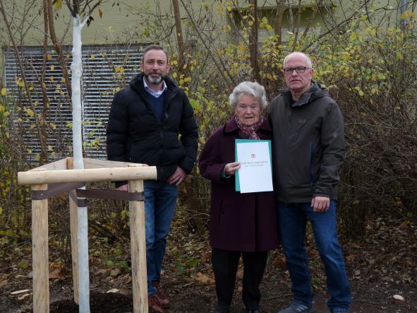 Zu ihrem 90. Geburtstag pflanzte Luise-Lotte Daniel am 20. November mit ihrer Familie in Großwelsbach einen Amerikanischen–Amberbaum.