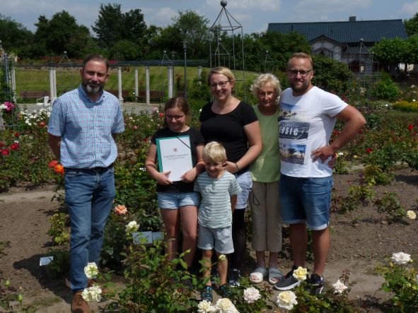 Zu ihrem 60. Geburtstag und aus Liebe zu ihrem Heimatdorf Ufhoven pflanzte die Familie Herzog am 24. August in der Straße der Einheit die Rose “Wehrinsel”.