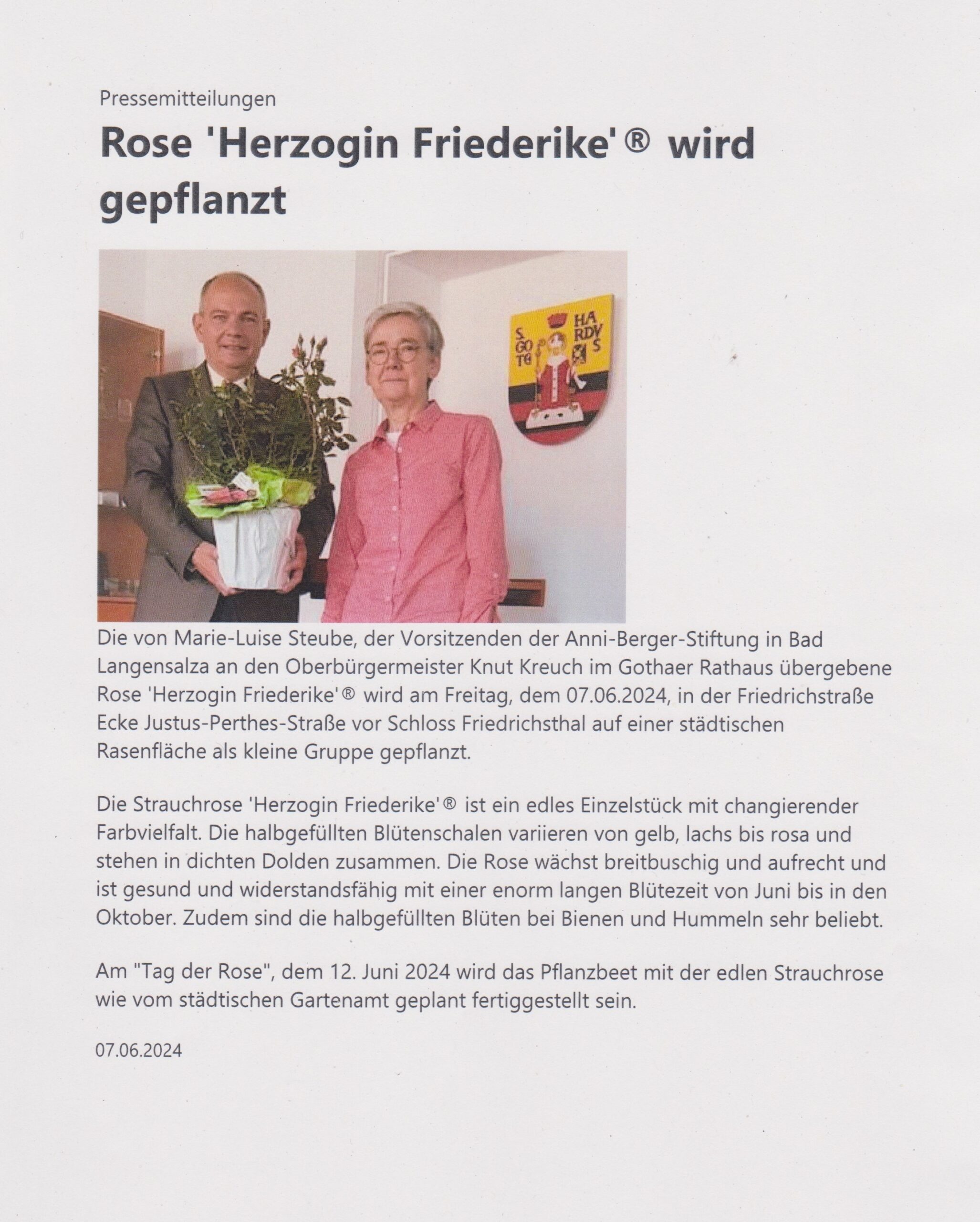 Vom 10. Bis 12.09.2021 waren die Stadt Bad Langensalza und die Anni-Berger-Stiftung Gastgeber für die Jahrestagung der Fachgruppe der Rosengemeinden, Rosenstädte und Rosenkreis der Deutschen Rosengesellschaft e.V in unserer Stadt…mehr